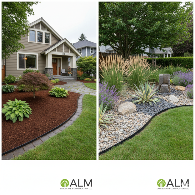 - Define Edges: Use clean, intentional edging materials (like stone, metal, or concrete borders) to define your garden beds and walkways. This creates a neat, professional look that instantly cleans up the entire yard.